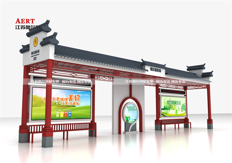 在科技充斥著生活的全部,當(dāng)金屬和石塊堆滿著整個城市,當(dāng)人們在快節(jié)奏的生活中身心疲憊,古典文化就會是一股清泉洗滌著內(nèi)心的浮躁與焦灼。因此復(fù)古變成了越來越多的國人渴望的精神需求,而公交車作為現(xiàn)代化生活中一個代表性的產(chǎn)物,在便捷了人們的生活之時,也加快了人們的步伐,使人們沒有時間停下來好好的欣賞身邊的景色,沒有精力好好的思考生活中的美好。公交車候車亭是所有公交車臨時停靠的港灣,是人們暫停腳步得以休息的場所,不但要能讓忙碌的人們得以休息身體上的疲憊,得以遮擋烈日的酷曬,得以遮蔽風(fēng)雨的吹打,同時還需要給與人們以精神的舒適。而仿古候車亭會是一個不二的選擇。